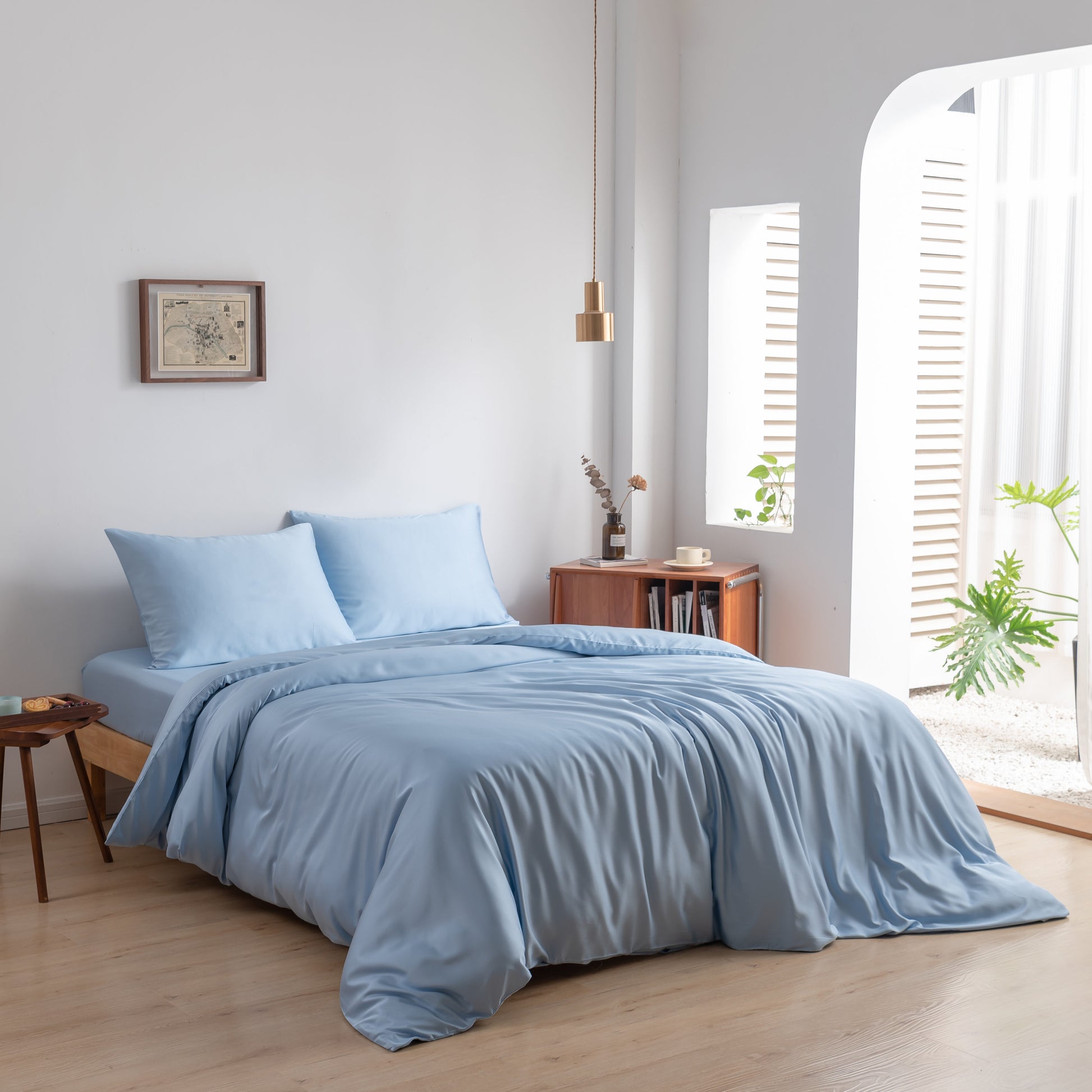 Ontdek het geheim voor serene dromen en een rustgevende nachtrust. Niets is kostbaarder dan heerlijk slapen voor jou. Verwen jezelf met het ultieme comfort van ons biologische bamboe dekbedovertrek in de kleur Sky Blue.